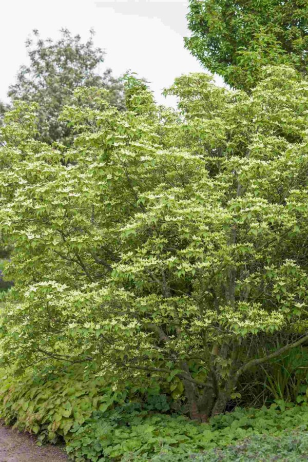 Die Cornus kousa chinensis kann eine Breite von etwa 3 bis 4 Metern erreichen. Diese Pflanze wächst aufrecht und bietet eine beeindruckende Präsenz im Garten.