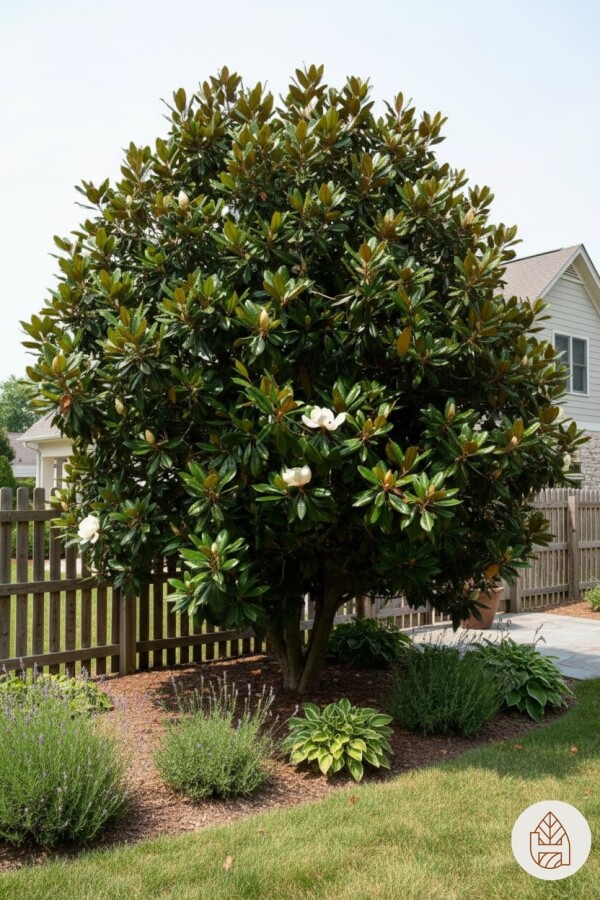 Die Magnolia grandiflora kann eine Breite von bis zu 5 Metern erreichen. Diese Pflanze wächst aufrecht und ist ideal als Solitär in der Gartenlandschaft.