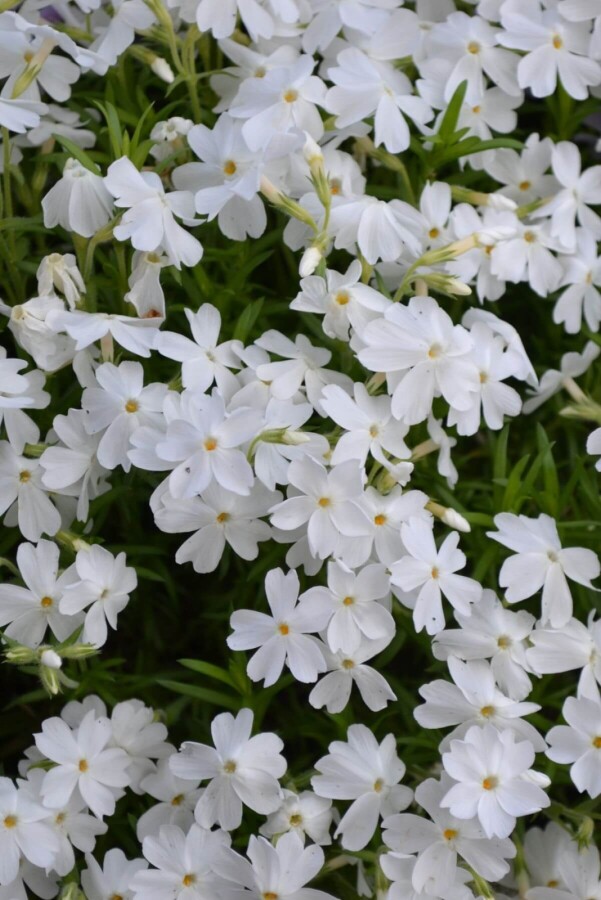 • Mit seiner geringen Endhöhe von etwa 10 cm eignet sich Phlox subulata 'White Delight' besonders gut für niedrige Beetbepflanzungen oder als Bodendecker.