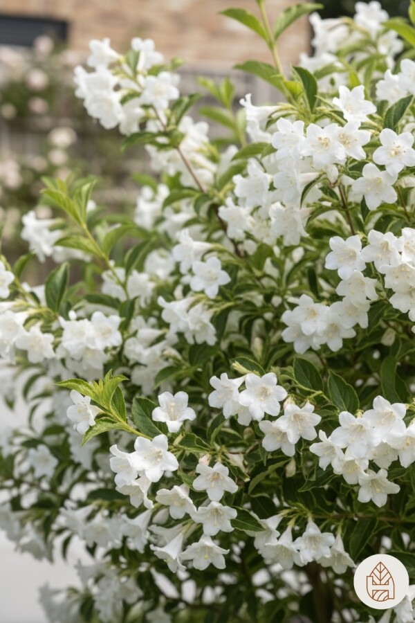 Die Blütezeit dieser Pflanze erstreckt sich von Mai bis Juli. Weigela 'Candida' zeigt in dieser Zeit ihre charakteristischen weißen Blüten.